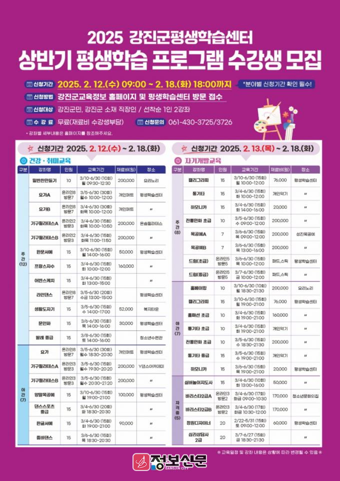 ![]() 강진군, 2025년 상반기 평생학습 수강생 모집 |