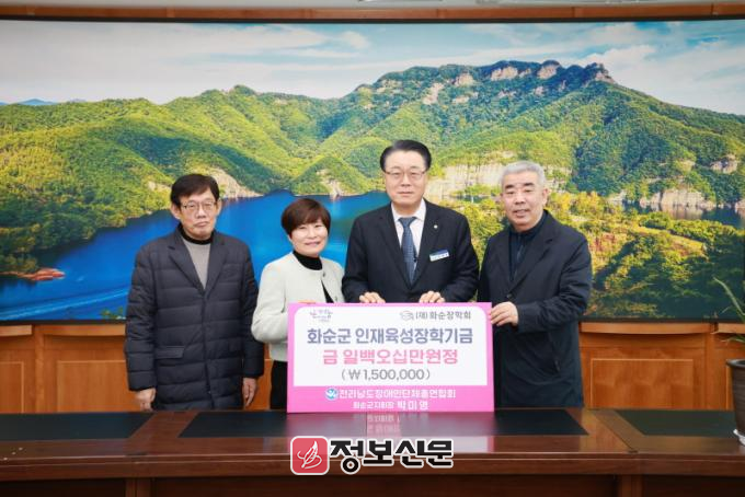 ![]() 전남장애인단체총연합회 화순군지회, 지역 인재육성 장학금 기탁 |