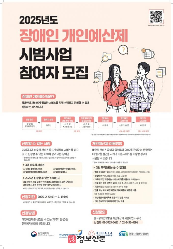 이번 사업은 장애인이 자신의 필요에 따라 예산을 직접 운용할 수 있도록 지원하는 제도로 기존의 획일적인 복지 지원 방식에서 벗어나 맞춤형 복지를 실현하는 데 초점을 맞추고 있다.