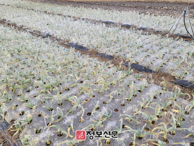 함평군 농업기술센터는 6일 “최근 평균기온이 영하로 내려가며 매서운 추위가 기승을 부리고 있다”며 “특히 올해 함평군 평균기온은 0.3℃로 평년 1.3℃에 비해 낮아 1월 하순부터 양파잎이 하얗게 변하는 증상이 나타나고 있어 더욱 각별한 주의가 필요하다”고 전했다.