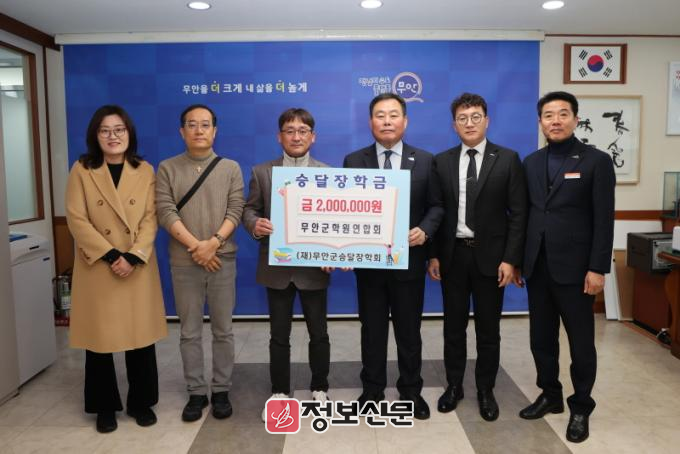 이번 장학금은 무안군 학원연합회 회원들이 무안군 교육발전을 위해 마련했으며, 회원들의 뜻을 모아 송성섭 대표가 장학금을 전달했다.
