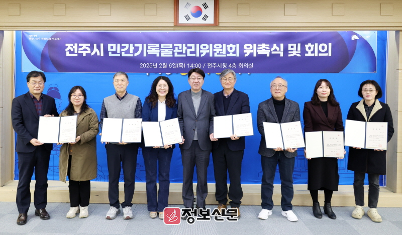 전주시는 6일 시청 4층 회의실에서 제5기 전주시 민간기록물관리위원회 위원 위촉식을 가졌다. 전주시는 지난 2016년부터 기록학과 역사, 문화, 지역학, 인류학 등 민간기록물 관련 학계·기관·단체의 전문가들을 위원으로 위촉해 전주시 민간기록물관리위원회를 운영해왔으며, 이번 5기 위원들의 임기는 위촉일로부터 2년이다.