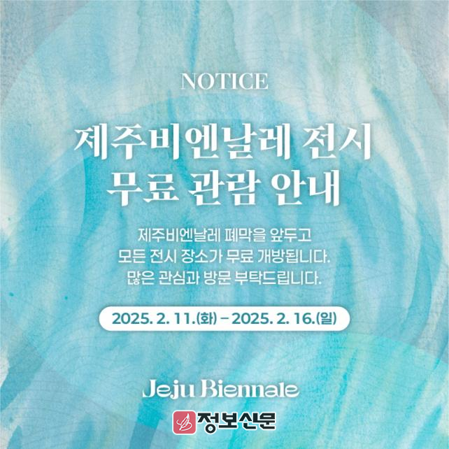 ![]() 제주특별자치도, 제주비엔날레 전시 마지막 주 무료 관람 진행 |