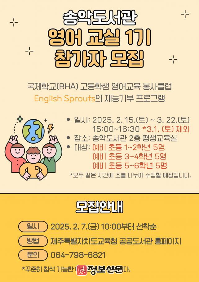 기타 자세한 내용은 송악도서관(064-798-6821)으로 문의하면 된다.