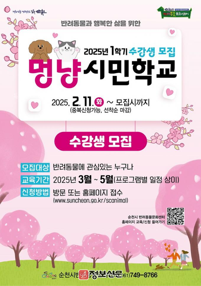 ![]() 순천시 반려동물문화센터, ‘멍냥시민학교’ 3월 개강 |