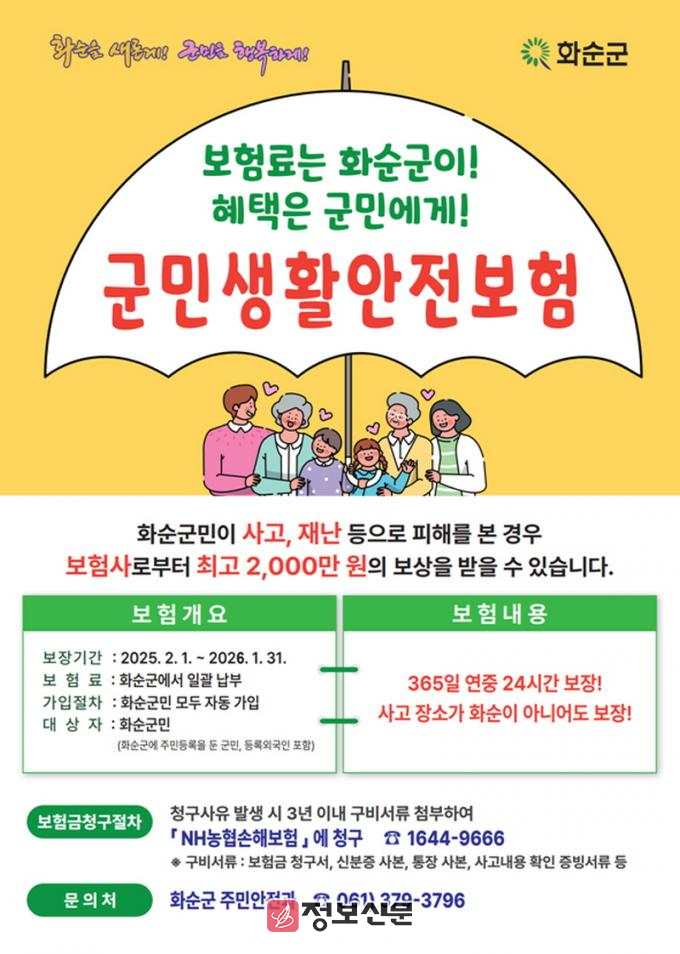 ![]() 화순군, 2025년 군민생활안전보험 운영 |