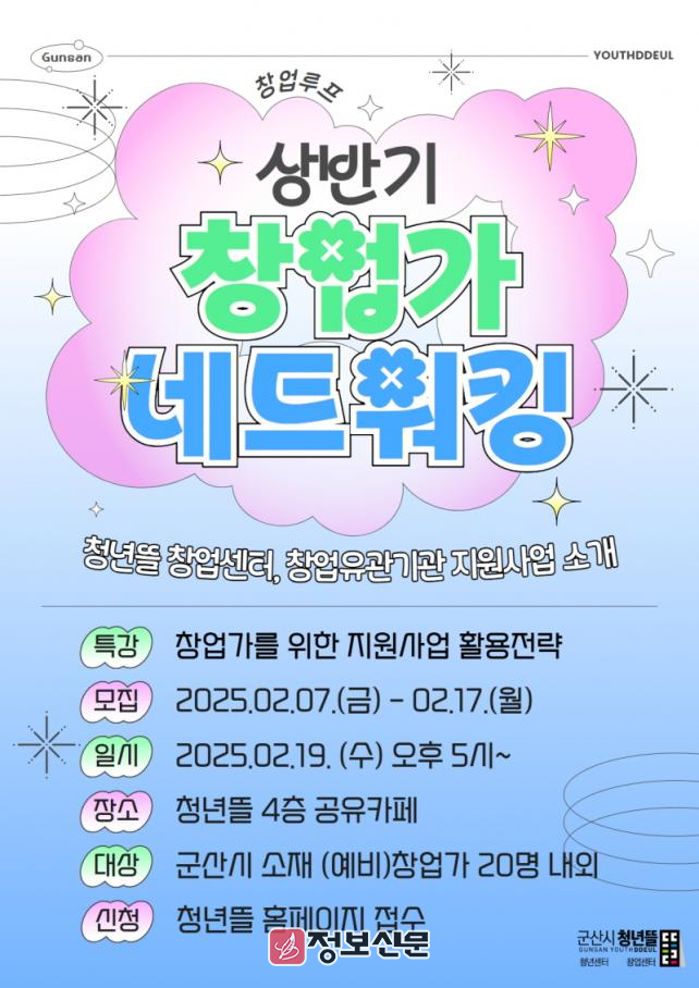 ![]() 군산시, 청년뜰 창업센터 2025 상반기 창업가 네트워킹 참여자 모집 |