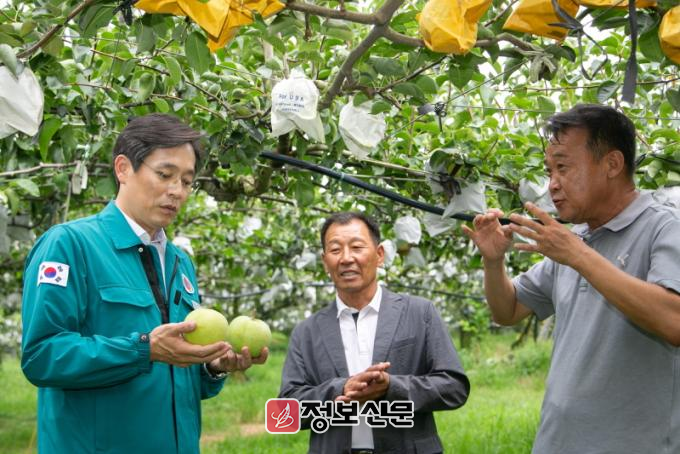 기상 이상에 따른 배꽃 및 과실 저온·고온 피해 경감을 위해서는 자부담 40%로 미량 요소를 포함한 기상경감자재를 공급해 과실 정형 향상, 생산·수확량 증대도 지원한다.