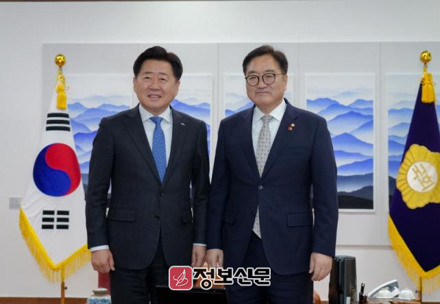 오영훈 지사는 11일 오후 국회에서 우원식 국회의장을 만나 제주-중국 칭다오 간 신규항로 개설 행정절차가 조속히 마무리될 수 있도록 국회 차원의 적극적인 협조를 요청했다.