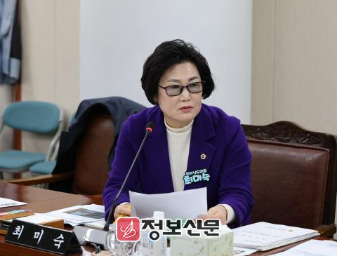 ![]() 전라남도의회 최미숙 의원이 지난 7일에 열린 전라남도체육회 소관 업무보고에서 질의를 하고 있다.[전남도의회 제공] |