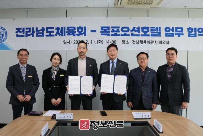 전라남도체육회(회장 송진호)에 따르면, 전라남도체육회는 지난 11일 오후 2시 전라남도체육회관 3층 대회의실에서 목포오션호텔(회장 기창민, 유준희 대표이사) 측과 업무협약식을 체결했다고 12일 밝혔다.