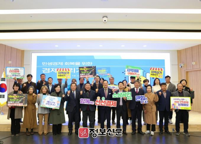 명현관 군수는 “민·관·기업·소상공인이 함께하면 어려운 경제위기를 이겨낼 수 있다”며 “민생경제회복지원금을 가급적 빨리 사용해주기를 바라며 지역상가 이용하기, 우리지역 농수산물 구매하기 등 소비촉진과 더불어 선결제 캠페인에도 적극 동참해주실 것”을 당부했다.