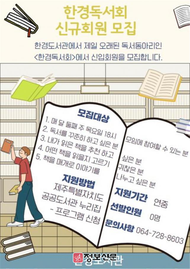 ![]() 제주시 한경도서관, 2025년 독서 동아리 회원 모집 |