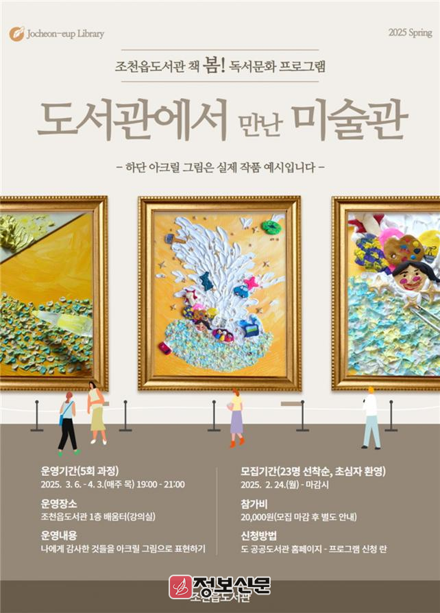 ![]() 제주시 조천읍도서관, 책 봄! 독서문화프로그램 참여자 모집 |