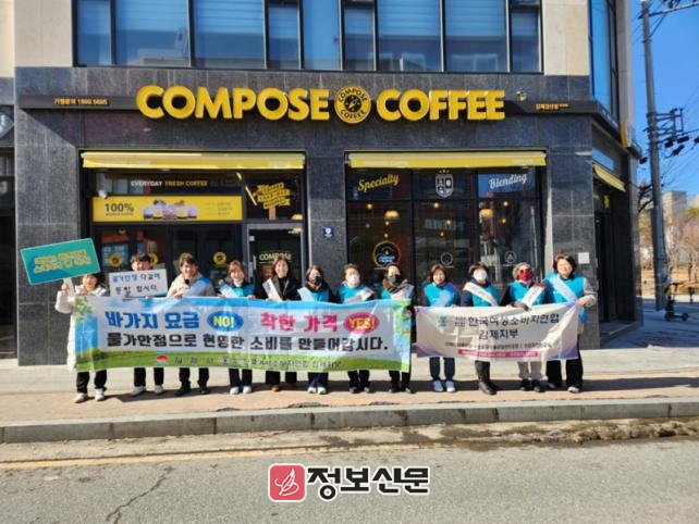 이번 캠페인은 (사)한국여성소비자연합 김제시지부(지부장 이승은)와 합동으로 추진했으며 경제진흥과 직원, 소비자연합 회원 등을 포함한 약 20여명이 참여해 상가 상인들과 시민들 대상으로 ‘함께 만드는 지역물가 안정’을 위한 활동을 진행했다.