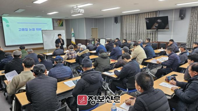 교육은 쌀 과잉생산 문제 해소와 식량자급률 향상을 위한 전략작물 확대를 목적으로 실시됐으며 함평군 농업기술센터 정형진 농촌지도사가 직접 교육을 진행하며 논콩 재배의 핵심기술과 현장 노하우를 전수했다.