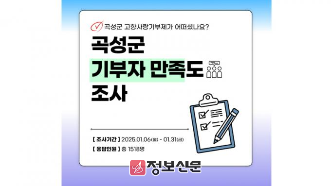 ![]() 곡성군, 2024년 고향사랑기부제 만족도 조사 실시 |