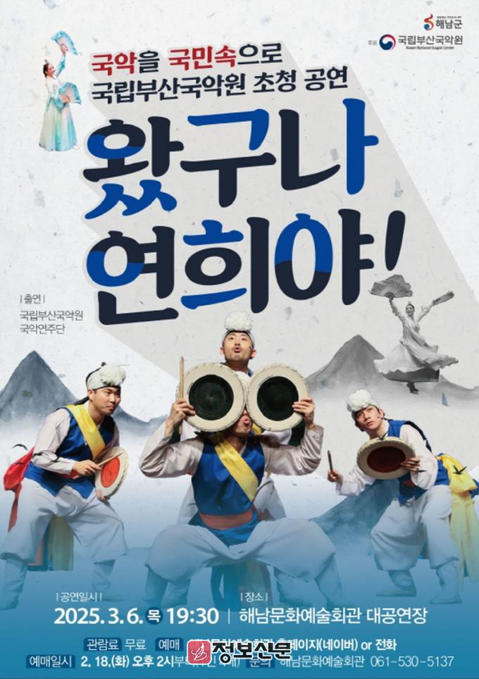 ![]() 해남군, 국립부산국악원 왔구나 연희야! 공연 개최 |