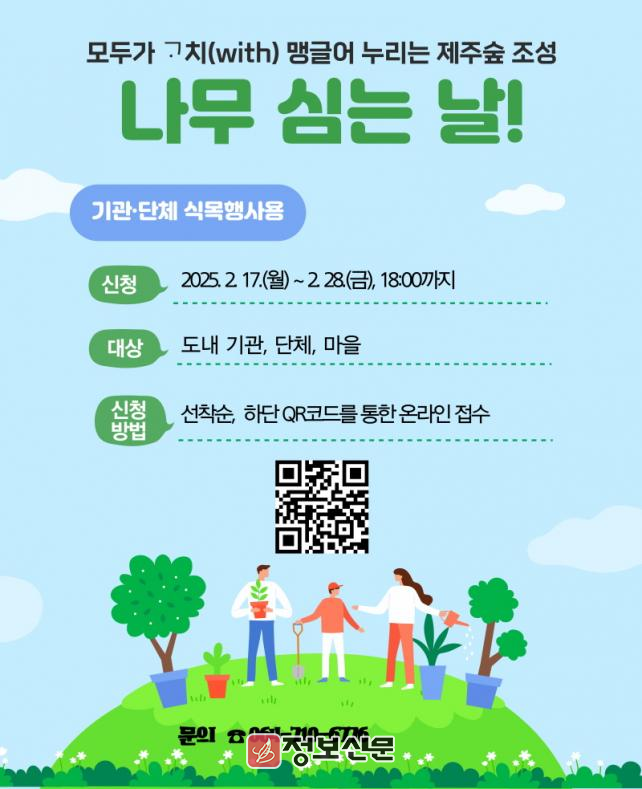 ![]() 제주특별자치도, ‘제주숲 ᄀᆞ치 맹글어요’ 나무 6,000여 본 무료 나눔 |