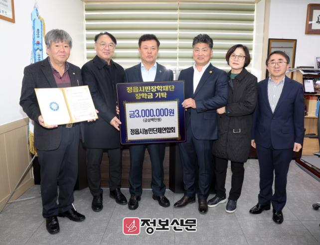 정읍시농민단체연합회(회장 김태선) 또한 300만원을 기탁하며 지역 인재 육성에 힘을 보탰다.