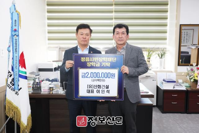 ![]() 정읍시, 장학금 기탁 줄이어(유)신화건설의 이인석 대표) |