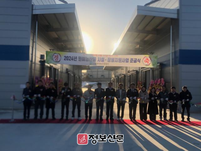 이번에 준공한 저온선별장(660㎡)·저온저장고(660㎡)는 민들레영농조합법인이 원예농산물 시설·장비 지원사업에 선정돼 총사업비 13억원(도비 3억 9000만원, 군비 3억 9000만원 자부담 5억 2000만원)을 투입해 총 1320㎡ 규모로 신축했으며 계약재배 농가 확대와 무·양파 수확 생력화를 통해 농가 경영비 절감으로 농가소득 안정화에 이바지할 것으로 전망된다.