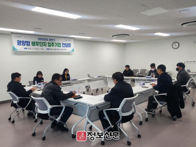 이번 간담회는 광양수산물유통센터 2층 회의실에서 열렸으며, 광양시 관리 동측배후단지 입주기업 경영진과 시 관계자 등 10명이 회의에 참석했다.