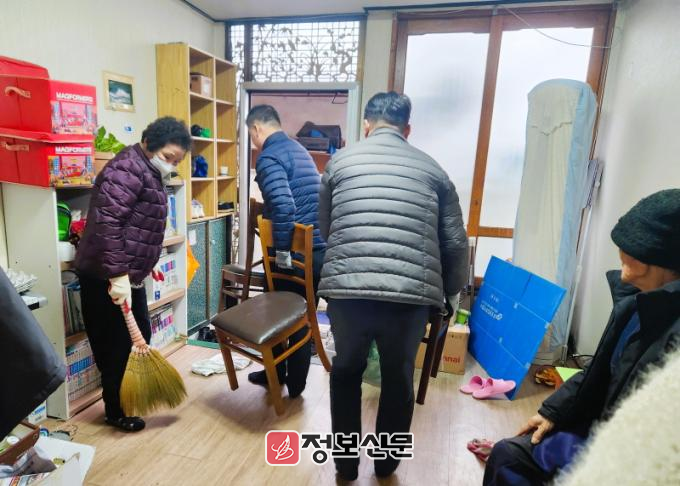 ![]() 장성밀알회와 부녀회 회원들이 조손가정 아동 공부방 마련에 일손을 보태고 있다 |