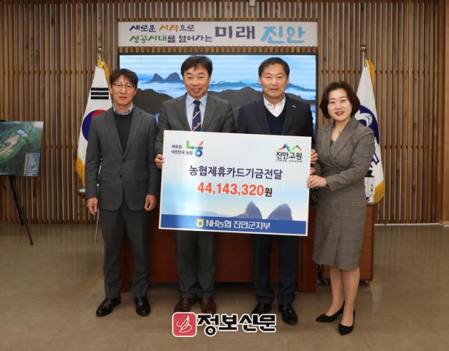 ![]() NH농협 진안군지부, 진안군에 제휴카드기금 4,414만원 전달 |