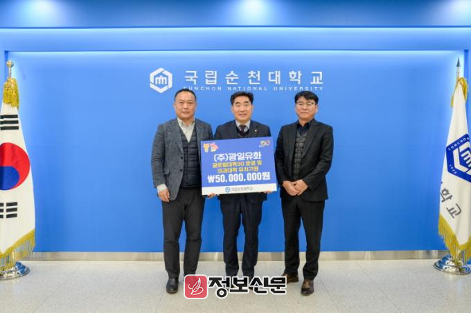 ![]() ㈜광일유화, 국립순천대에 발전기금 5천만 원 쾌척 |