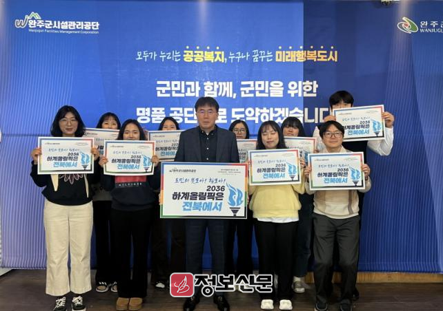 이희수 이사장은 “전북의 문화와 도민의 저력을 전 세계에 알리고 대한민국의 위상을 높일 수 있는 하계올림픽이 반드시 전북에서 유치되기를 기원한다”며 “전북특별자치도와 완주군의 새로운 도약과 자긍심 향상에 기여할 수 있도록 완주군 시설관리공단이 함께 노력하겠다”고 밝혔다.