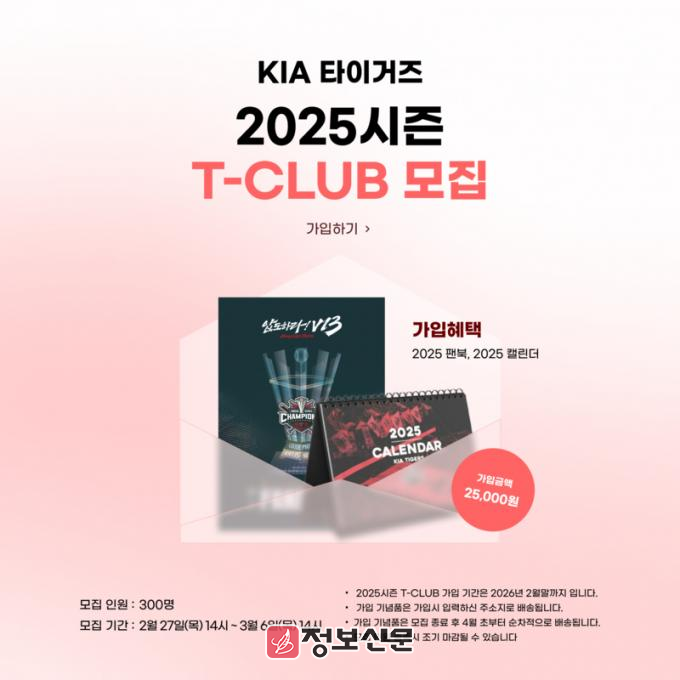 ![]() KIA 타이거즈, 2025 시즌 T클럽 회원 모집 |
