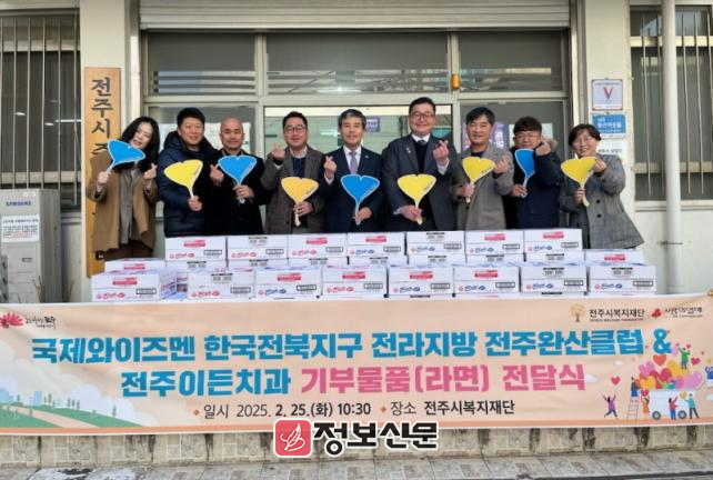 ![]() 국제와이즈멘 전주완산클럽.전주이든치과, 취약계층을 위해 라면 100박스 기부 |
