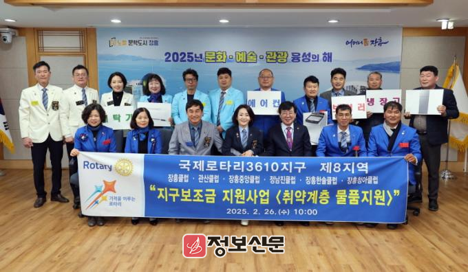 국제로타리3610지구 제8지역 회원 클럽은 장흥, 관산, 장흥중앙, 정남진, 장흥한솔, 장흥청아 등 6개 클럽이며, 지역에서 다양한 봉사 활동에 앞장서고 있다. 이번 지구보조금 지원사업으로 물품이 지원되는 가구는 지역 내 도움이 필요한 취약계층 가정 22가구(2,000만원 상당)이다.