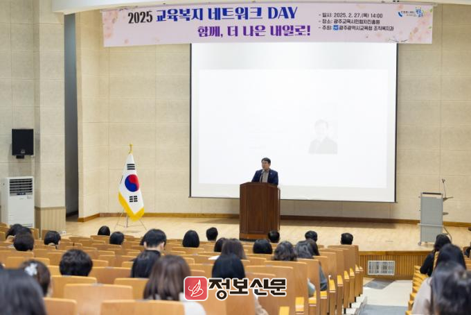 ![]() 27일 광주교육시민협치진흥원 대강당에서 올해 교육복지우선지원 사업에 대해 비전과 지난 성과를 공유하는 ‘2025 교육복지우선지원사업 교육복지 네트워크 DAY’에서 이정선 교육감인 인사말을 하고 있다. |