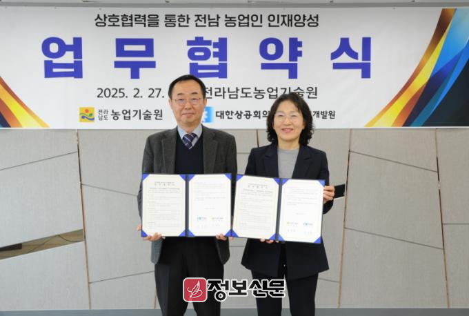 ![]() 전라남도농업기술원, 대한상공회의소 광주인력개발원과 업무협약 체결 |