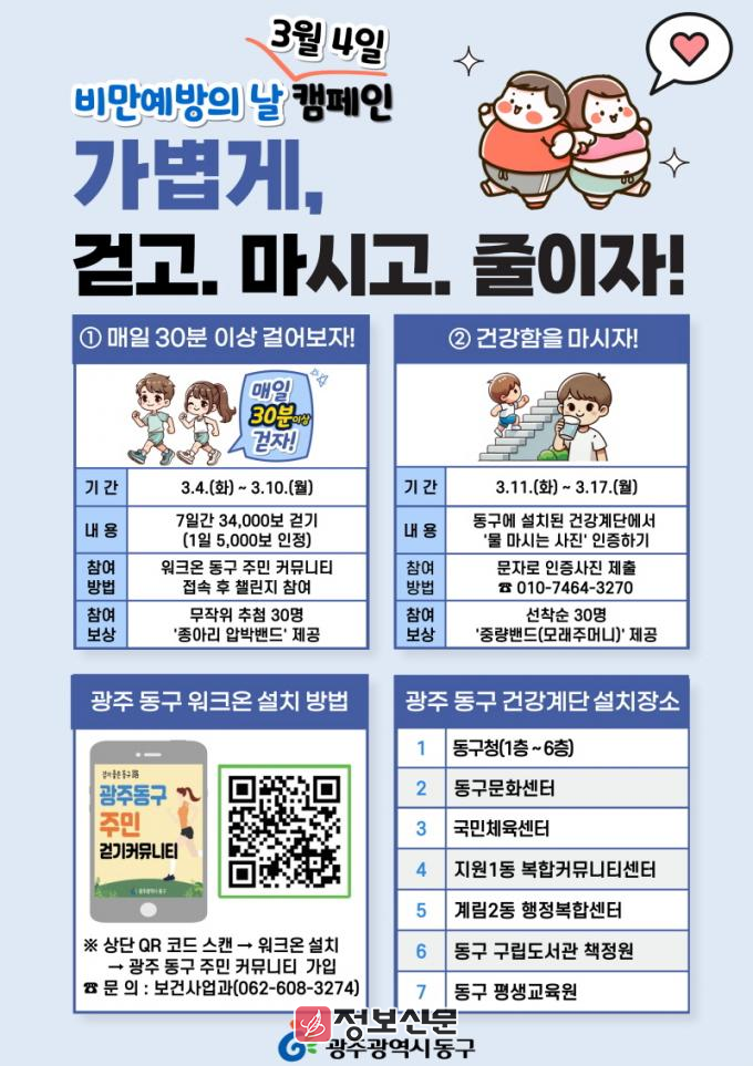 ![]() 광주시 동구, 비만 예방의 날을 맞아 걷기 챌린지 캠페인 추진 |