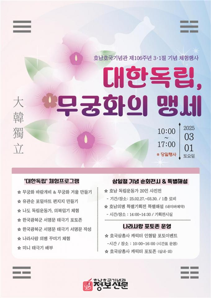 ![]() 호남호국기념관, 제106주년 삼일절 계기 체험행사 개최 |