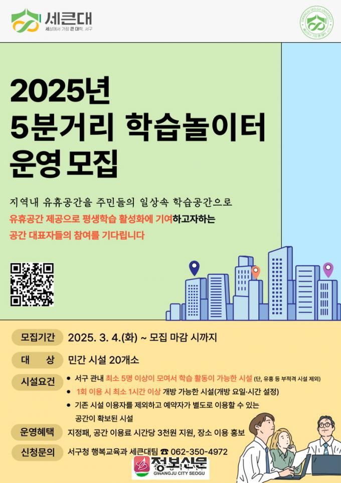 ![]() 광주시 서구, 5분거리 학습놀이터 운영 시설 모집 |