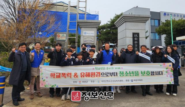 이날 캠페인은 ‘학교폭력과 유해환경으로부터 청소년을 보호합시다’라는 슬로건으로 신학기를 맞은 부안여자고등학교 정문에서 실시됐다.