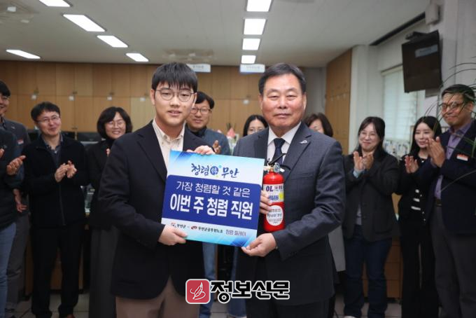 김산 군수는 올해 1월 고등학교를 졸업하고 신규 임용된 식량원예과 전해찬 직원을 지명했으며, 무안군 공무원노조는 상하수도사업소 박상원 소장을 지명했다.
