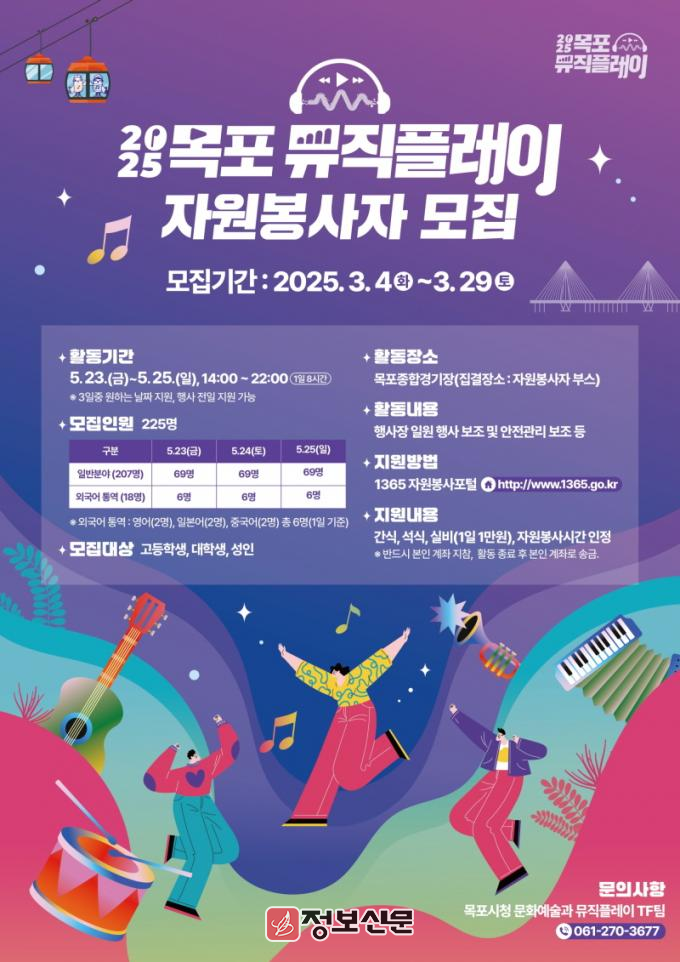 ![]() 목포시, 2025 목포뮤직플레이 자원봉사자 모집 |