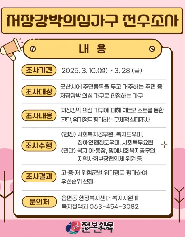 ![]() 군산시, 저장강박 의심·위기가구 전수 조사 실시 |