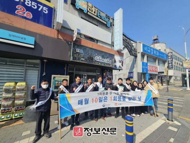 김제시 자원순환과는 매월 10일을 1회용품 없는 날로 지정해 이를 시민들에게 널리 알리고,‘카페 이용 시 텀블러 지참하기’,‘1회용 봉투 대신 장바구니(에코백) 사용하기’, ‘음식 포장 시 다회용기에 담아가기’ 등 다양한 실천 운동을 권장하기 위해 캠페인을 마련했다. 또, 올바른 재활용품 분리배출 방법 안내 및 홍보물 배부 등 다양한 활동도 함께 전개됐다.