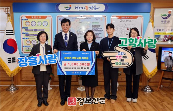 한승희 지점장은 “고향을 향한 애정과 지역 발전을 응원하는 마음으로 기부에 참여했다며, 장흥군이 더욱 발전하고 군민들이 행복한 삶을 누릴 수 있도록 기부금이 유용하게 쓰이길 바란다”고 전했다.