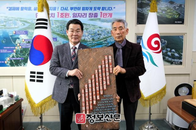 ![]() 부안군, 지천 우암 김법준 작가 매창시 서각 작품 44점 기증 |