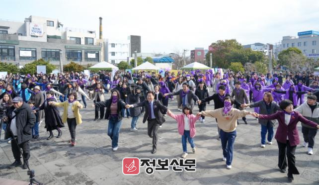 기념낭독 이후에는 참석자 모두가 올해 행사의 슬로건을 춤으로 표현한 기념 세레모니인 ‘다함께 춤(플레시몹)’과 생활 속 성평등 실천에 앞장서겠다는 의지를 담은 거리 행진으로 마무리됐다.