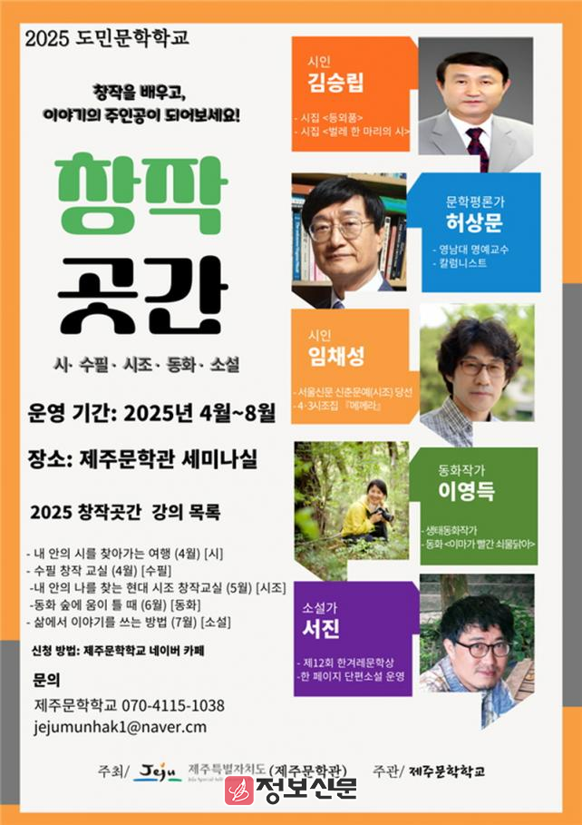 ![]() 제주문학학교 ‘창작곳간’ 개설, 시·수필 강좌 수강생 모집 |
