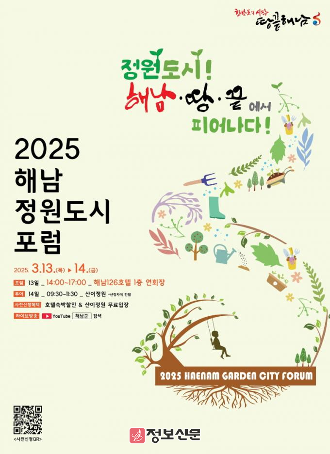 이번 포럼은‘정원도시, 해남·땅·끝에서 피어나다’를 주제로 산림청 및 전라남도, 정원 전문가 등의 강의 및 토론을 통하여 정원도시 해남의 정책 방향성과 정원문화 활성화 방안을 논의하는 자리로 마련된다.