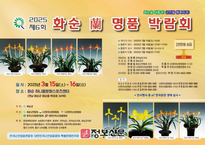 ![]() 화순군, 제6회 2025 화순 난 명품 박람회 3월 15일 개막 |